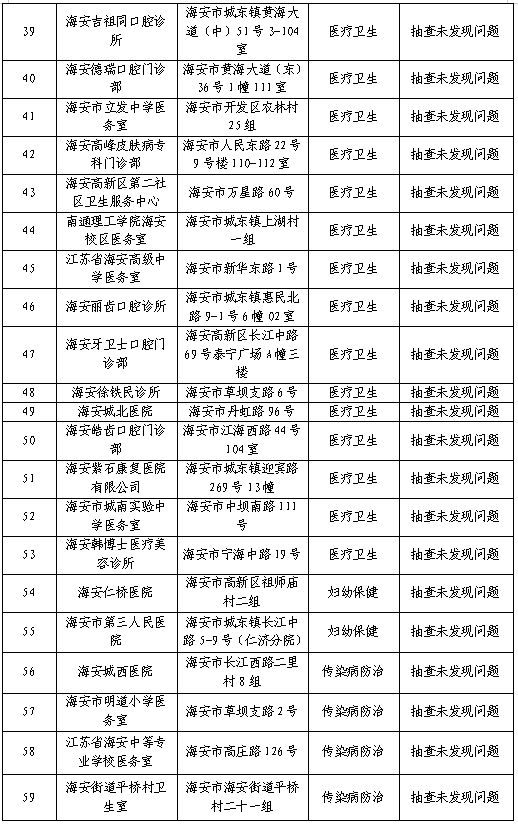 海安市衛生健康委員會2024年隨機監督抽查結果信息公示(四)