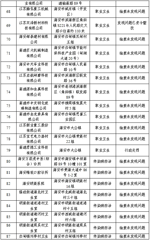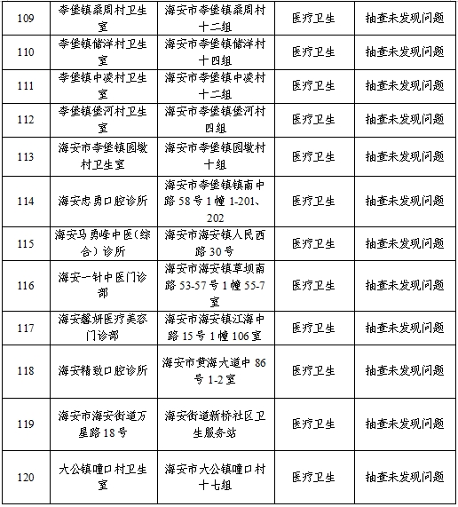 海安市衛(wèi)生健康委員會2024年隨機(jī)監(jiān)督抽查結(jié)果信息公示(二)
